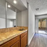 entertainment area / study / computer / work space. All 3 carpetted bedrooms offer comfortably large space, generous closets, and convenient bathrooms. The shared upstairs bathroom offers double sinks and a privacy door between the vanity and shower/tub. The primary suite is a true retreat for relaxing. Downstairs conveniently includes a spacious laundry room with cabinets and direct access to the two-car attached garage. Located in a desirable community, residents enjoy access to three pools/spas, multiple tennis courts, gym & club house /rec room. Lush, tall mature shade trees, quiet streets, great for peaceful walks. Close to CSUN, shopping, restaurants, buses.
