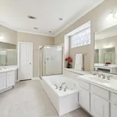 - Interior Features: Breakfast Bar, Double Vanity, Kitchen Island, Kitchen Family Room Combo, Bath In Primary Bedroom, Soaking Tub, Separate Shower