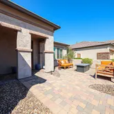 quartz island. Upgraded KitchenAid appliances, a wall convection microwave/oven combo, gas cooktop, and a walk-in pantry elevate your cooking experience to new heights. Home also offers elegant plantation shutters throughout and surround sound in the great room, office and back patio. Outside, experience Arizona living at its finest in the tranquil backyard oasis. Relax on the extended covered patio or paver patio while listening to the soothing sounds of the rustic water feature. Stroll along the wrap-around paver walkway or lounge on the lush artificial turf, all while enjoying stunning mountain views to the east. In addition to the luxurious home features, CantaMia offers resort-style amenities and unparalleled mountain vistas. It invites you to embrace an active adult lifestyle filled with new adventures and meaningful connections. Discover the perfect blend of sophistication and leisure in the heart of scenic Arizona.