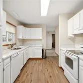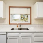 Step inside and you’ll immediately notice how cared-for this home feels. The kitchen has been refreshed with freshly painted white cabinets and new countertops, giving it a bright, inviting look. A cozy dining area sits just off the kitchen — perfect for family meals or a quiet morning coffee while the sun rises through the east-facing windows.