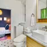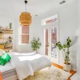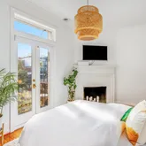 The south facing, spacious primary bedroom is bathed in natural light, with new custom closet units, and provides a peaceful, private retreat. The primary bedroom is generously sized and features the added bonus of a private balcony, offering a tranquil outdoor space just off your bedroom—ideal for morning coffee or unwinding after a long day. The balcony overlooks the serene and beautifully landscaped back garden which features a patio and grilling space, providing a perfect spot for residents to relax and enjoy the outdoors. The second bedroom is equally charming and flexible, perfect for guests, a home office, or a cozy den. The full bathroom on this level has been beautifully updated, offering modern fixtures and a soothing ambiance.