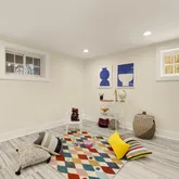 Upstairs, the second level features three bedrooms and two full baths, including a primary suite with a generous walk in closet and luxurious bath with a double vanity and large shower. The lower level adds exceptional flexibility, offering a guest bedroom and full bath, bonus storage room or home office tucked away for quiet calls, wet bar, and ample space for play or entertaining. With a side basement entrance, this level is ideal for indoor/outdoor fun or accommodating an au pair.