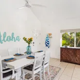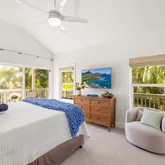 The finished walk-in attic includes drywall and updated flooring, exceptional bonus space virtually unheard of in Poipu condos. Recent upgrades include a 2025 roof, four-zone Fujitsu mini-split A/C, designer finishes, updated carpeting, flat-screen TVs, and premium wood furnishings with carved accents throughout.