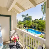 Resort amenities include three pools, hot tubs, tennis and pickleball courts, and 24-hour patrol, with a new streetside bike lane coming soon. Dining at the Grand Hyatt Kauai is only a short walk away. One assigned parking space included; second available subject to availability.