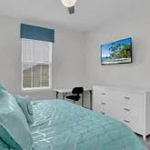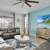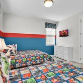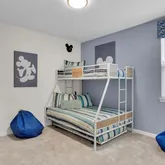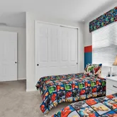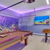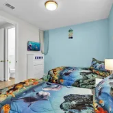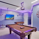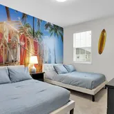 Step outside to your private, screened-in pool and spa. With no rear neighbors, you can enjoy quiet mornings by the water or relax after a day at the parks. The garage has been converted into a game room, while a loft upstairs offers space for movies, games, or simply unwinding. Themed bedrooms add a fun touch that guests of all ages will appreciate.