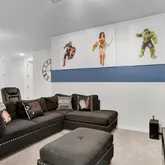 Inside, the open-concept living and dining areas create a natural gathering place for friends and family. The kitchen is equipped with stainless-steel appliances, plenty of counter space, and a large island, making it easy to prepare meals and snacks for a crowd.