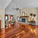 - Interior Features: Ceiling Fan(s), Central Vacuum, Cable Available, Cathedral Ceiling(s), Ceilings-Some 9 Ft +, Attic Stairs Pulldown, Fireplace(s), Walk-In Closet(s), Soaking Tub, Disabled Access, Solid Surface Counters, Entrance Foyer, Bookcases, Utility Sink, Pantry, Dual Owner’s Bedrooms