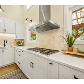- Kitchen Appliances: Builtin Oven, Builtin Range, Cooktop, Disposal, Free Standing Refrigerator, Gas Appliances, Island, Range Hood, Solid Surface Countertop, Stainless Steel Appliance