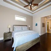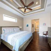 - Interior Features: Ceiling Fan(s), High Ceilings, Primary Bedroom Main Floor, Solid Wood Cabinets, Split Bedroom, Stone Counters, Tray Ceiling(s), Walk-In Closet(s), Window Treatments