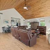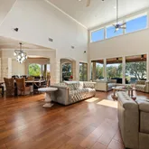 - Interior Features: Beamed Ceilings, Bookcases, Open Beams Beamed Ceailings, Ceiling Fan(s), Chandelier, Separate Formal Dining Room, Granite Counters, High Ceilings, In Law Floorplan, Interior Steps, Kitchen Island, Multiple Living Areas, Multiple Dining Areas, Main Level Master, Murphy Bed, Open Floorplan, Pantry, Soaking Tub, Smart Thermostat, Walk In Closets