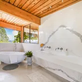 - Bathroom: Double Sinks, Dual Flush Toilet, Marble, Oversized Tub, Primary - Oversized Tub, Shower over Tub - 1, Tub in Primary Bedroom, Tubs - 2+, Updated Bath