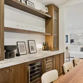 - Appliances: Built-In Gas Range, Built-In Refrigerator, Dishwasher, Hood Over Range, Tankless Water Heater, Wine Refrigerator
