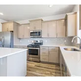 - Kitchen Appliances: Dishwasher, Disposal, Free Standing Range, Gas Appliances, Island, Microwave, Pantry, Plumbed For Ice Maker, Quartz, Stainless Steel Appliance