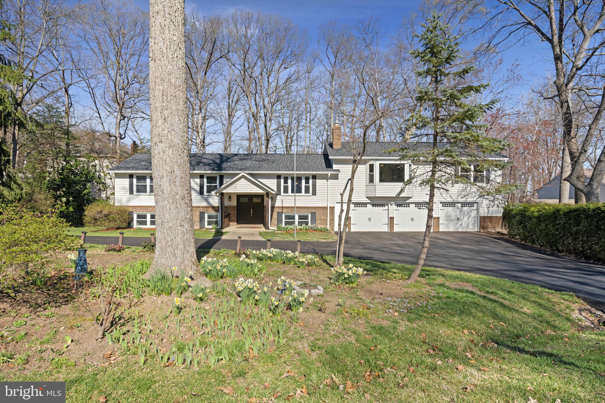 This spacious and beautifully updated home offers an incredible blend of comfort, style, and functionality, all nestled in a private cul-de-sac surrounded by mature trees. With a massive three-car garage addition, this home boasts generous living spaces, modern upgrades, and a welcoming atmosphere. Inside, the renovated kitchen (2021) is truly the heart of the home with updated appliances, stylish finishes, and luxury vinyl tile flowing throughout the common areas. Enjoy casual dining at the large center island with stool seating and a built-in beverage cooler. The adjacent breakfast room and sunroom provide a bright and airy space leading out to a tiered private deck, perfect for entertaining or relaxing in the serene backyard. The main level features new carpeting in the bedrooms (2021) and an expansive primary suite with a sitting room and private bath. A separate formal dining room ensures plenty of space for hosting family and friends. Downstairs, the fully finished lower level impresses with a recreation room, built-in bar, additional bedroom, full bath, office space, and ample storage—ideal for guests, a home office, or multi-use living. Major updates include a new roof (2019), insulated triple-layer garage doors (2019), and new HVAC units (2022), ensuring efficiency and peace of mind. With first-class renovations, abundant space, and a fantastic location, this home is an unbeatable value! Don't miss your chance to make it yours!