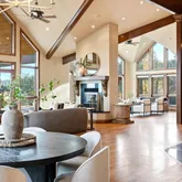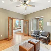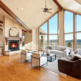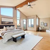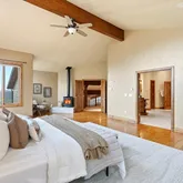 - Room Description: Wood floors, vaulted ceilings, gas fireplace, reading nook, private deck access