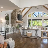 - Fireplace Features: Stone, Wood Burning