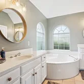 - BATH DESCRIPTION: Shower/Tub, Shower and Jetted Tub, Separate Lavatories, Separate Water Closet, Walk-In Closet, Tile