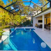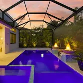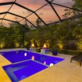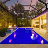 - Pool Features: Auto Cleaner, Chlorine Free, Fiber Optic Lighting, Gunite, Heated, In Ground, Lighting, Pool Alarm, Salt Water, Screen Enclosure