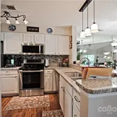 fan/light & patio access! Dining Room w/custom chandelier & new LVP floors! Kitchen offers granite countertops, newer stainless steel appliances including refrigerator (to remain), plenty of cabinetry for storage, tile backsplash, LVP flooring & pantry! Laundry Room off Kitchen with W&D to remain! Master Bedroom features...2 bedroom, 2 bath Third level condo perfectly located in the heart of Cornelius for every convenience