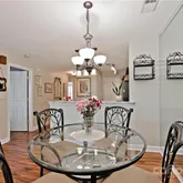 fan/light & patio access! Dining Room w/custom chandelier & new LVP floors! Kitchen offers granite countertops, newer stainless steel appliances including refrigerator (to remain), plenty of cabinetry for storage, tile backsplash, LVP flooring & pantry! Laundry Room off Kitchen with W&D to remain! Master Bedroom features ceiling fan/light, private patio access, private bath & large walk in closet! Newly remodeled Master Bath offers custom, tiled shower, granite countertop, custom lighting & tile floors! Spacious Guest Room features large windows for plenty of natural light & ceiling fan/light! Newly remodeled Guest Bath w/tiled tub/shower combination, granite countertop & tile floors! Private, covered patio w/vaulted ceiling & access from Great Room & Master suite offers plenty of relaxation!