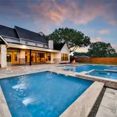 - Exterior Features: Covered Patio, Deck, Fully Fenced, Fence, Spa/Hot Tub, Sprinkler Irrigation, Outdoor Kitchen, Porch, Patio, Private Yard, Tennis Courts