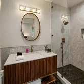 - Room Bathroom Features: Vanity area, Remodeled, Shower in Tub