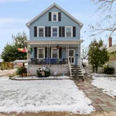 Built circa 1900, this lovingly maintained and thoughtfully updated 4-bedroom, 2.5-bath home offers approximately 1,738 sq ft of classic charm and modern comfort. Step into a gracious living room that opens seamlessly to a formal dining room and cozy den—an ideal layout for gathering and entertaining, complete with electric remote shades for added convenience. A spacious eat-in kitchen features new custom cabinetry, quartz counters, a porcelain tile backsplash, updated windows, and a sliding glass door. Hardwood floors throughout the first level fill the home with warmth and abundant natural light. A convenient half bath with marble flooring, plus smart-home upgrades including a Nest thermostat and integrated lighting, add modern ease.