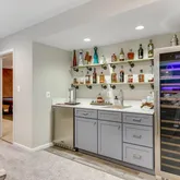 Step inside to discover 5 spacious bedrooms and 3.5 beautifully updated bathrooms, including newly renovated guest bathrooms on the main and second floors. The fully finished basement is a true entertainment haven, featuring a family/entertainment room with a wet bar, surround sound, and brand new stain-resistant carpeting. The wet bar is a connoisseur's dream, equipped with a large dual-temp 150+ bottle Wine Enthusiast fridge, a built-in commercial-grade kegerator, and custom shelving for your favorite bottles. The basement also boasts a gaming area with a Brunswick professional pool table and a Ms. Pac Man arcade console, both of which can convey with the house if desired.