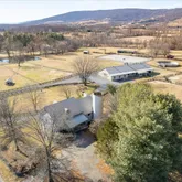 Custom 10 stall barn lined with reclaimed fence boards and knotty pine. Vaulted ceilings. 14x14 stalls with Lucas fixtures. Wash stall, heated tack/feed rooms, heated lounge with bathroom and large indoor storage for hay, machinery or additional stalls. Round pen, ring,...Bank barn conversion home with 3 levels, 4/5 BR, 3 BA, attached silo and stunning western views. Old beams and hardwood floors throughout. Lower level has separate entrance and potential for in-law, nanny or working student suite,
