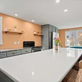 - Kitchen Features: Flooring - Hardwood,Window(s) - Picture,Dining Area,Countertops - Stone/Granite/Solid,Kitchen Island,Deck - Exterior,Exterior Access,Open Floorplan,Recessed Lighting,Remodeled
