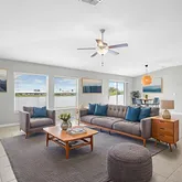 thanks to perfect year-round weather. The primary bedroom is located at the rear of the home, offering extra privacy, and boasts a roomy en-suite primary bath,