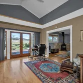 - Living Room Features: Cathedral/Vaulted, Deck Attached, Open Beam Ceiling, View