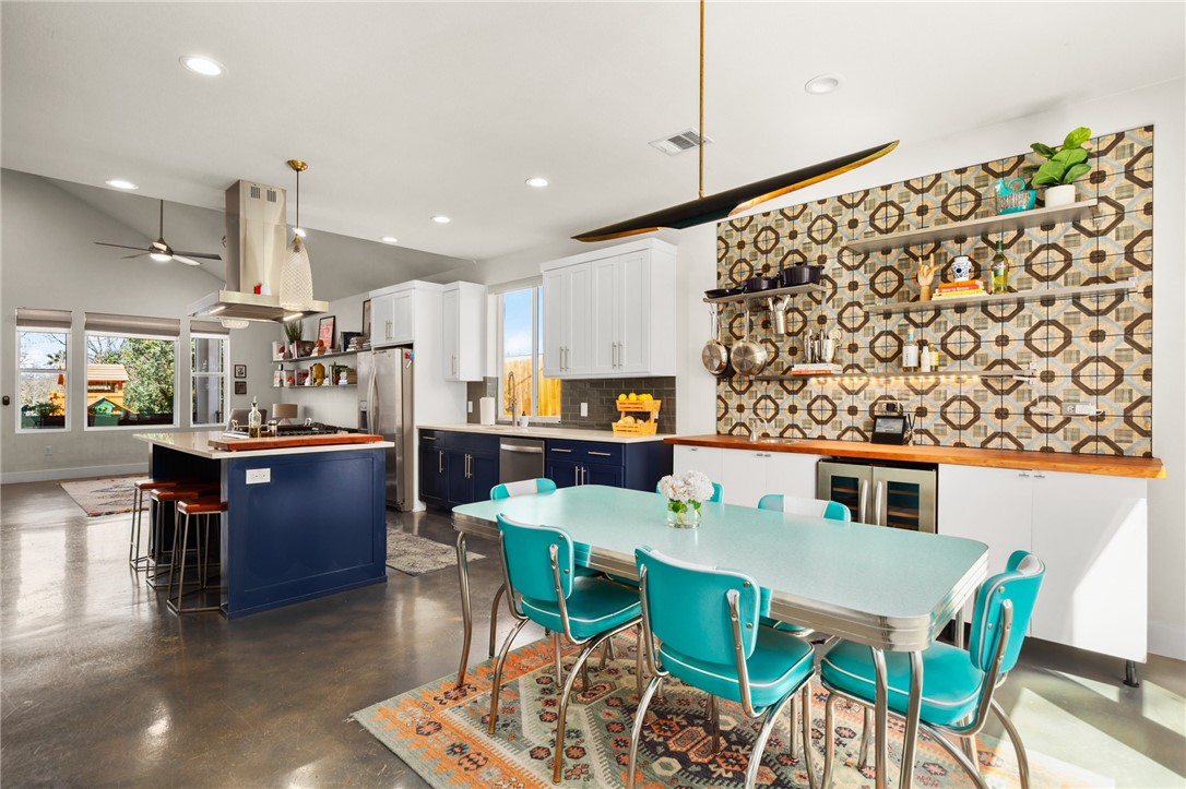 - Appliances: Dryer, Dishwasher, Disposal, GasRange, Microwave, Refrigerator, StainlessSteelAppliances, TanklessWaterHeater, WineRefrigerator, Washer