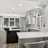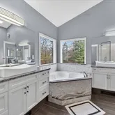 - Interior Features: Separate Dining, Bookcases, High Ceilings, Coffered Ceiling(s), Open Floorplan, Vaulted Ceiling(s), Walk-In Closet(s), Bar, Breakfast Bar, Breakfast Room, Kitchen Island, Custom Cabinetry, Solid Surface Countertop(s), Double Vanity, Tub, Two Story Entrance Foyer