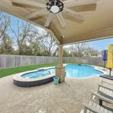 - Exterior Features: Covered Patio, Fully Fenced, Fence, Spa/Hot Tub, Patio, Private Yard, Storage