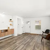 - RoomDescription: Very spacious living area featuring vinyl flooring w/built-in entertainment cabinetry & Corian Countertops.
