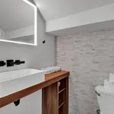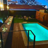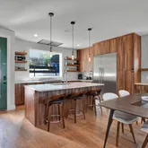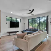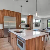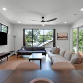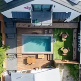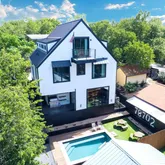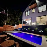 Connected via a stunning tiered terrace and private pool, a newly constructed contemporary home (5 bed / 3.5 bath) rises behind it, offering three levels of modern living with expansive windows, sleek finishes, and designer touches throughout. This home can also be accessed privately from the alley. This unique dual-dwelling layout creates flexible rental configurations — from hosting large groups to offering separate units for couples or professionals - maximizing occupancy and nightly rates.