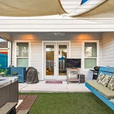 Highlights: Sleeps 14 in real beds: 4 queens (8), 1 king (2), twin bunks (2), queen pull-out sofa (2). Queen & twin air mattresses for extras (kids/short stays). Private hot tub in covered back garden—ideal for unwinding. Fun third-floor game room w/ arcade machine, board games & big-screen TV. Gas grill + outdoor shower for easy BBQs & rinses. Every bedroom, living & game room has HD smart TV (Fire Sticks). Driveway for 4 cars (EV charger on request). High walkability to restaurants & more. Quiet neighborhood—respect neighbors! Pets case-by-case.