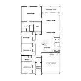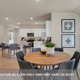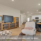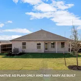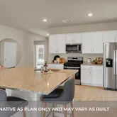 Photos are representative of plan and may vary as built. Imagine yourself inside the beautiful Kingston II floorplan at Bar W Ranch in Leander, TX. This plan offers 2,098 sq. ft. with 4 bedrooms, 2 baths, and a 2-car garage. There are 2 exterior elevations to choose from. The long foyer leads into the impressive kitchen open to the dining area and family room, perfect for entertaining. The kitchen features granite or quartz countertops, a huge diamond shaped kitchen island, and stainless steel appliances. The open concept family space offers plenty of natural lighting and looks out to the large covered patio. The stunning main bedroom, bedroom 1, is privately located off the family room and offers a large walk-in shower and huge walk-in closet. This home comes included with a professionally designed landscape package and a full irrigation system as well as our America's Smart Home® package that offers devices such as the Qolsys IQ Panel, Video Doorbell, Alarm.com app, Honeywell Thermostat, Deako Smart Light Switch, Kwikset Smart lock, and more.