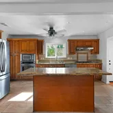 - Kitchen Features: 220 Volt Outlet, Counter - Solid Surface, Stone Counters, Dishwasher, Eat-in Kitchen, Disposal, Gas Range/Cooktop, Kitchen Island, Microwave, Oven Built-in, Updated Kitchen