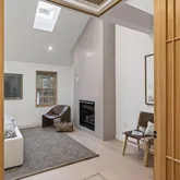 The entire third level is devoted to a vaulted primary suite with skylights, fireplace, walk-in closet, and spa-level bath featuring radiant heated floors. Additional bedrooms are thoughtfully positioned for privacy and flexibility. The finished lower level provides additional living space with a full bath — ideal for media, fitness, office, or guests.