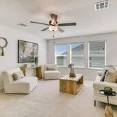 The private primary suite offers a spa-inspired bath with oversized walk-in shower, dual vanities, and a generous walk-in closet. Upstairs, three bedrooms with walk-in closets surround a large secondary living area plus a versatile media or flex room ideal for movie nights, playtime, or study.