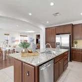 - Kitchen Features: 220 Volt Outlet, Breakfast Nook, Counter - Solid Surface, Stone Counters, Dishwasher, Double Oven, Eat-in Kitchen, Disposal, Gas Range/Cooktop, Kitchen Island, Microwave, Oven Built-in, Self-Cleaning Oven, Updated Kitchen