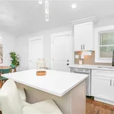 - Kitchen Features: Cabinets Other, Cabinets White, Eat-in Kitchen, Kitchen Island, Pantry, Pantry Walk-In, Solid Surface Counters, Stone Counters, View to Family Room, Other