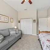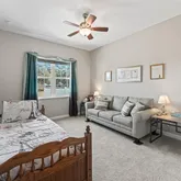 - Interior Features: Ceiling Fan(s), High Ceilings, Kitchen/Family Room Combo, Open Floorplan, Primary Bedroom Main Floor, Stone Counters, Walk-In Closet(s)