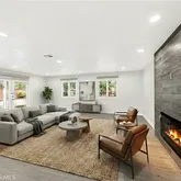 Filled with natural sunlight from its desirable south-facing orientation, this beautifully upgraded 4-bedroom, 3.5-bath home is located in a sought-after gated community in Northridge. The property has been extensively remodeled with hundreds of thousands of dollars in upgrades, offering a bright, open, and modern living experience. High ceilings and an open floor plan create an airy atmosphere throughout. The updated kitchen features quartz countertops, stainless steel appliances, and abundant cabinetry, and opens seamlessly to the family room with a cozy fireplace—ideal for everyday living and entertaining. The lower level features an additional flexibl-use living area that may serve as a secondary family room, home office, or multi-purpose space. The spacious primary suite boasts vaulted ceilings, walk-in closets, and a tastefully remodeled en-suite bathroom. All bathrooms have been updated with elegant, modern finishes. Enjoy private front and back yards with a wood patio, perfect for relaxing or hosting guests. Conveniently located near shopping, dining, top-rated schools, and easy freeway access, this turnkey home offers the perfect combination of light, space, security, and convenience.