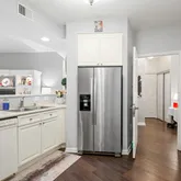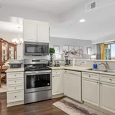 This condo’s modern aesthetic shines throughout. The spacious living and dining areas are bathed in natural light, thanks to sliding glass doors and sunroom windows that highlight the clean lines and open layout. The kitchen features Corian countertops, ample cabinetry, and updated stainless steel appliances—perfect for everything from quick bites to gourmet creations. Stylish, updated LVP flooring flows seamlessly through the home, adding a fresh, polished vibe. The primary suite is a serene retreat with a generous walk-in closet and a sleek en-suite bath boasting a walk-in shower and separate bathtub. The second bedroom offers flexibility, whether you need a guest room, home office, or creative space.