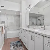 - Room Bathroom Features: Bathtub, Shower, Shower in Tub, Closet in bathroom, Double sinks in bath(s), Double Sinks in Primary Bath, Exhaust fan(s), Linen Closet/Storage, Quartz Counters, Remodeled, Separate tub and shower, Soaking Tub, Stone Counters, Upgraded