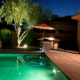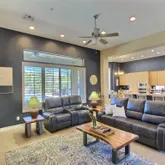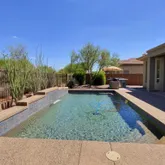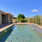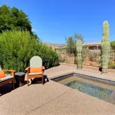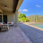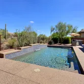 featuring heated pool and spa, large covered patio space, open desert lot and mountain views! Kitchen includes slab granite counters, stainless appliances and large island. Plantation shutters, all tile and wood flooring, Full facade courtyard entry. 2-car epoxy floor garage. Owners will consider a dog. King bed in primary bedroom and guest room. Queen bed in guest casita. Queen bed in guest casita $6,600/mon...Anthem Country Club~4 bedroom, den, 3.5 bath furnished vacation rental with resort feel backyard