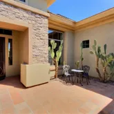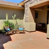 featuring heated pool and spa, large covered patio space, open desert lot and mountain views! Kitchen includes slab granite counters, stainless appliances and large island. Plantation shutters, all tile and wood flooring, Full facade courtyard entry. 2-car epoxy floor garage. Owners will consider a dog. King bed in primary bedroom and guest room. Queen bed in guest casita. Queen bed in guest casita $6,600/mon November-May. $3,500/mon June- October.
